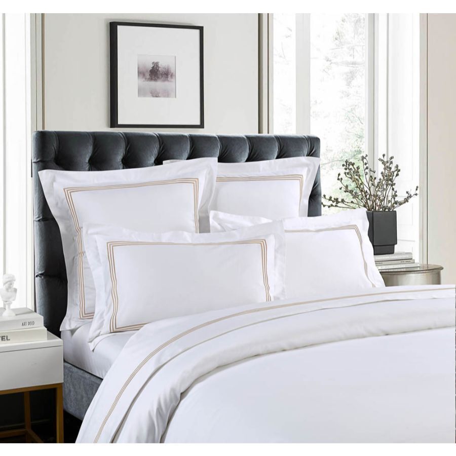 Instantly elevate any bedding ensemble to a whole new level of sleep, style and comfort with this hotel-inspired 1000-thread-count sheet set. Made from irresistibly soft, long-staple cotton and finished with an elegant triple embroidered detail to match the Ambassador range, it delivers that tailored, refined look you see in premium bedlinen — and still stays breathable for everyday use.
