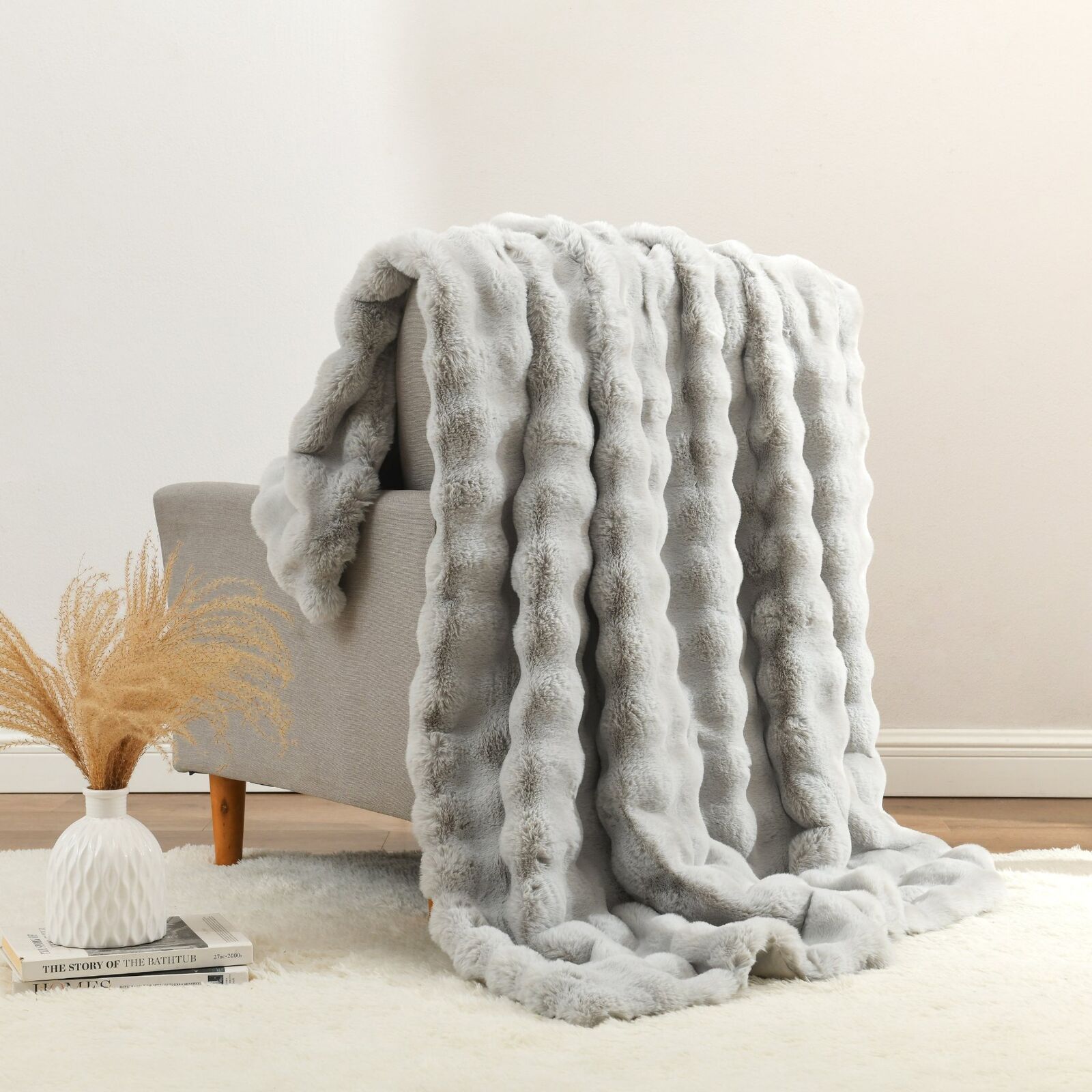 Indulgently soft with a luxe long-hair pile, the Eden Faux Fur Throw in Silver adds instant sophistication to any space. The silky faux-fur front feels sumptuous, while the faux-velvet suede reverse offers a sleek, tailored drape.