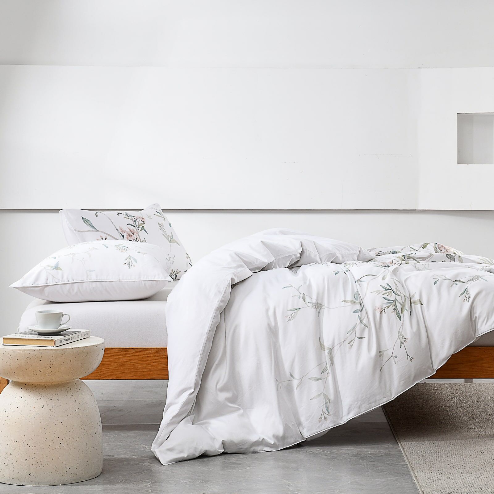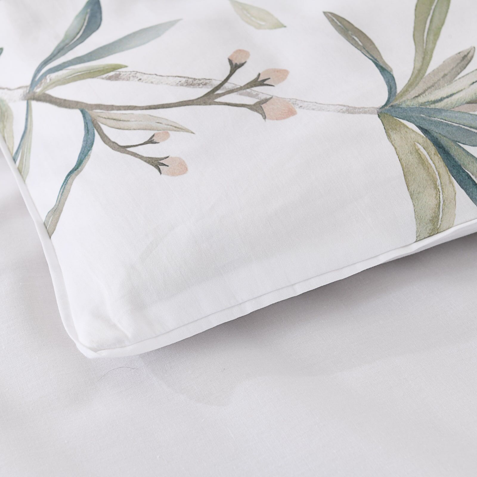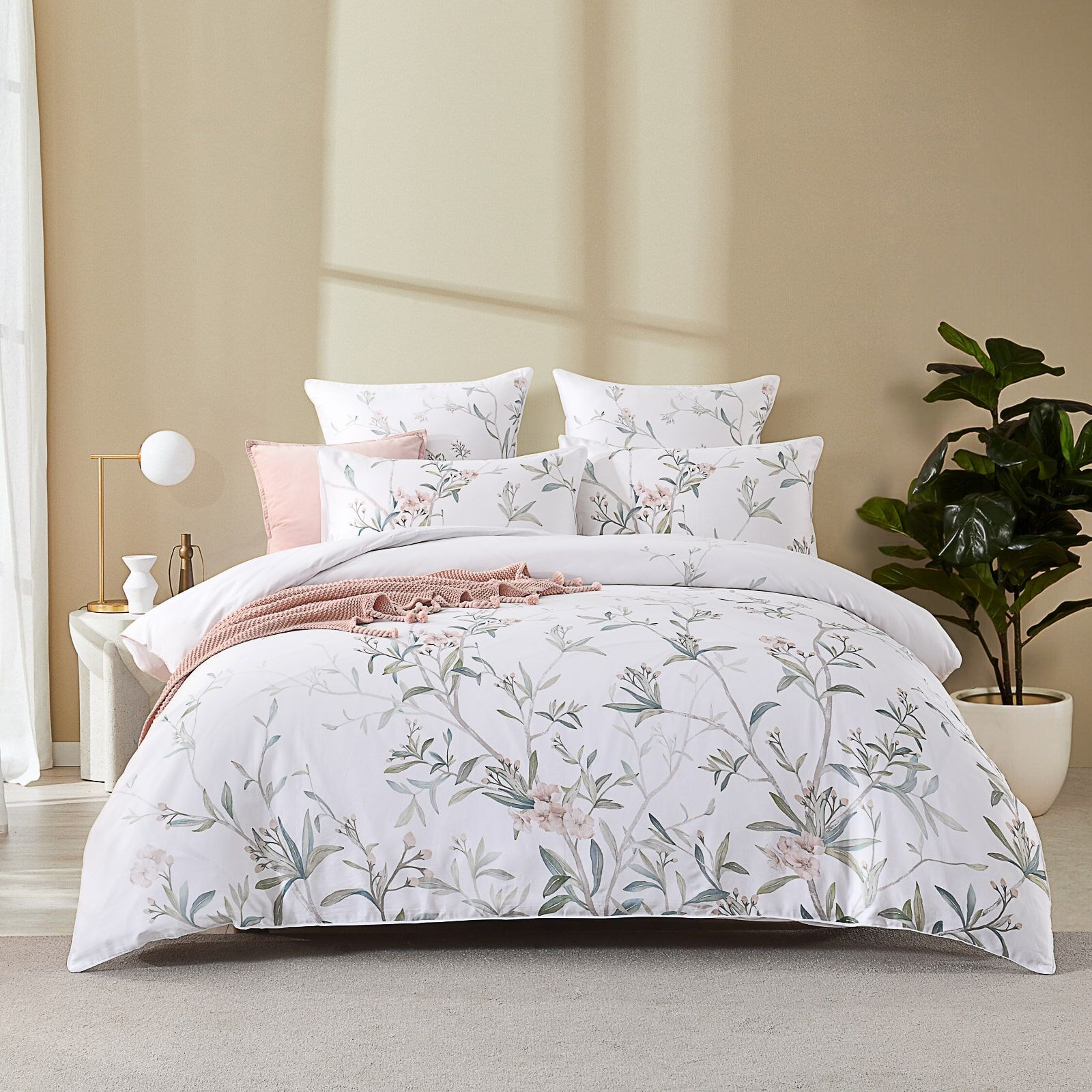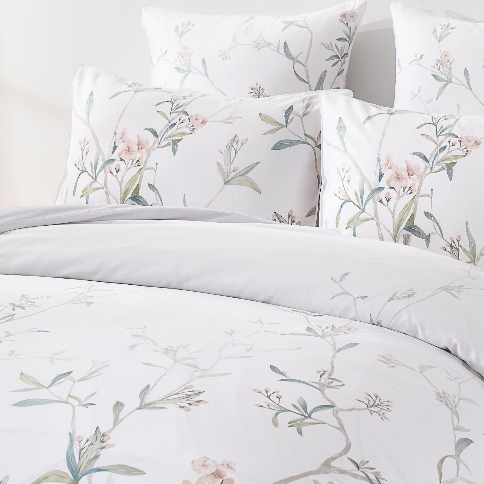 The Yarra Quilt Cover Set by Linen Studio captures the elegance of nature with its gentle floral design in muted blush, sage, and soft grey tones over a fresh white base—perfect for creating a calm, inviting bedroom retreat. Crafted in 400 thread count cotton sateen on both sides, it combines a silky-smooth touch with lasting comfort and breathability.