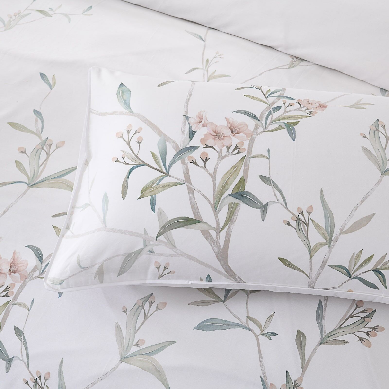 Buy NowThe Yarra Quilt Cover Set by Linen Studio captures the elegance of nature with its gentle floral design in muted blush, sage, and soft grey tones over a fresh white base—perfect for creating a calm, inviting bedroom retreat. Crafted in 400 thread count cotton sateen on both sides, it combines a silky-smooth touch with lasting comfort and breathability.